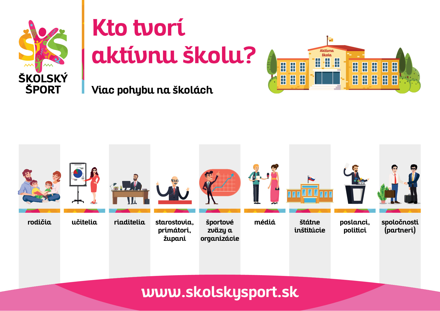 Aj keď na prvý pohľad by sa mohlo zdať, že školy sú v tom samé, aktívna škola je ekosystém vzťahov a každý z nás môže prispieť k tomu, aby školy boli aktívnejšie. Aktívnu školu tvorí aktívny: