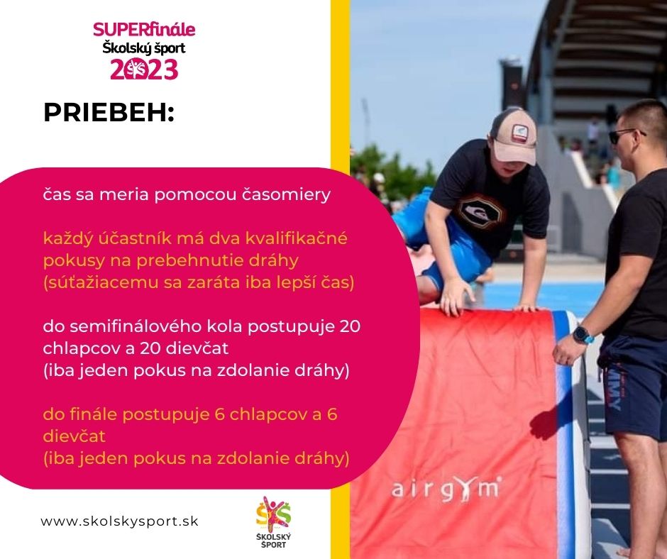 - disciplíny: akrobacia, preskok, hrazda, dievčatá – lavička, chlapci – člnkový beh