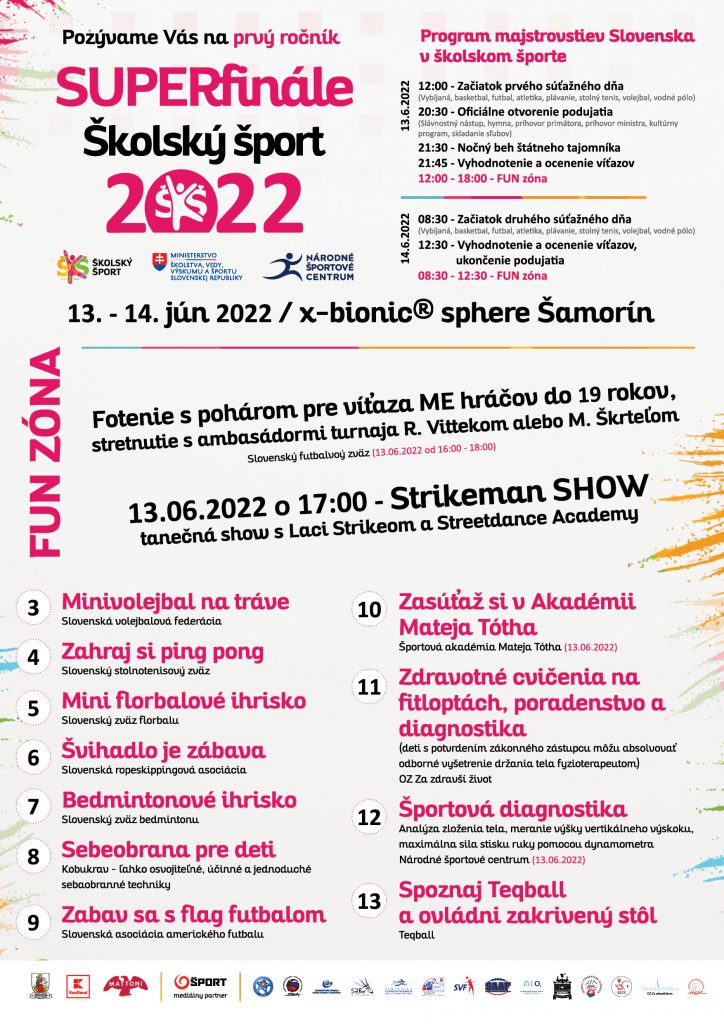 Talentovaných mladých športovcov prídu povzbudiť pozvaní hostia a športové osobnosti prítomných športových zväzov. Skvelú divácku kulisu určite vytvoria žiaci a učitelia z okolitých škôl. Pre divákov a verejnosť je pripravený sprievodný program, ktorý ponúkne lákavé súťaže a netradičné športy.